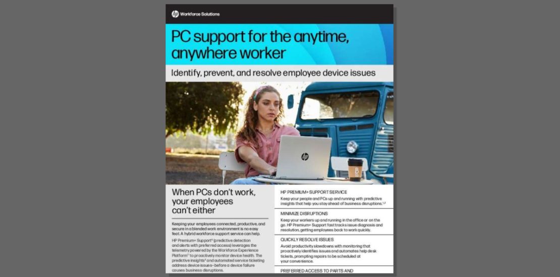 When your workforce is dispersed, your PC support needs to be just as accessible. 🖥️ Check out the solution brief, “PC Support for the Anytime, Anywhere Worker,” to discover how @HP Premium + Support helps maintain your team’s productivity through proactive insights and quick repair services.