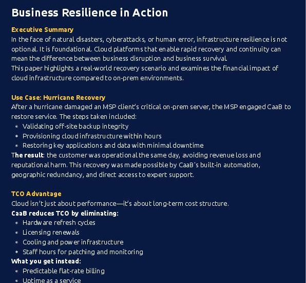✅ Core systems restored the same dayCaaB’s built-in redundancy, flat-rate billing, and expert support make business continuity not just possible—but practical.Message us to discuss how we can support your resilience planning.
