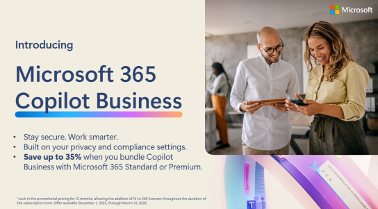 Save up to 35% when you bundle Copilot Business with Microsoft 365 Standard or Premium. 💸 Message us to take advantage of this deal.